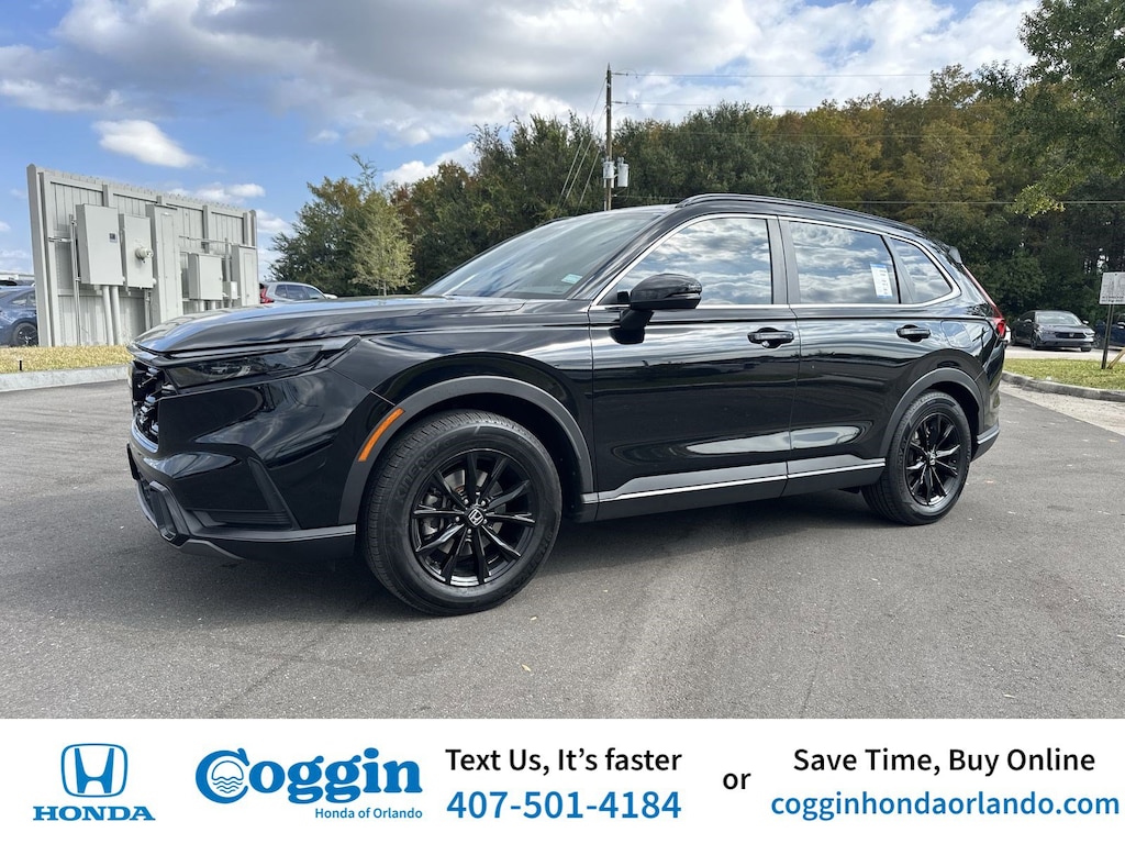 Honda Certified! 7 year 100,000 Mile Factory Warranty! ONE OWNER, CLEAN CARFAX, BLUETOOTH, HANDSFREE, BACKUP CAMERA, CR-V Hybrid Sport, 4D Sport Utility, 2.0L I4 DOHC 16V, eCVT, FWD, Black Cloth, 4-Wheel Disc Brakes, 6 Speakers, ABS brakes, Apple CarPlay/Android Auto, Blind Spot Information (BSI) System warning, Brake assist, Bumpers: body-color, Cloth Seat Trim, Compass, Driver door bin, Driver vanity mirror, Dual front impact airbags, Dual front side impact airbags, Electronic Stability Control, Exterior Parking Camera Rear, Four wheel independent suspension, Front anti-roll bar, Front Bucket Seats, Front Center Armrest, Front reading lights, Heated door mirrors, Heated Front Bucket Seats, Heated front seats, Illuminated entry, Knee airbag, Leather Shift Knob, Leather steering wheel, Low tire pressure warning, Occupant sensing airbag, Outside temperature display, Overhead airbag, Overhead console, Passenger door bin, Passenger vanity mirror, Power door mirrors, Power moonroof, Radio data system, Radio: 240-Watt AM/FM Audio System, Rear anti-roll bar, Rear reading lights, Rear seat center armrest, Rear side impact airbag, Remote keyless entry, Speed-sensing steering, Split folding rear seat, Spoiler, Steering wheel mounted audio controls, Telescoping steering wheel, Tilt steering wheel, Traction control, Trip computer, Turn signal indicator mirrors. 43/36 City/Highway MPG KBB Fair Market Range High: $33,180 CARFAX One-Owner. Clean CARFAX. 2025 Honda CR-V Hybrid Sport Crystal Black Pearl 2025 Honda CR-V Hybrid Sport 4D Sport Utility FWD eCVT 2.0L I4 DOHC 16VCertified Pre-Owned 2025 HondaCR-V Hybrid Sport SUV