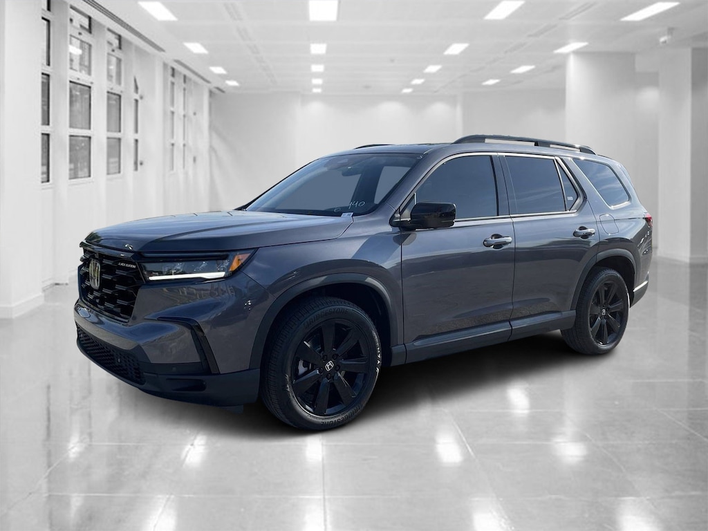 Modern Steel Metallic 2025 Honda Pilot 4D Sport Utility Black Edition 10-Speed Automatic 3.5L V6 DOHC 24V AWD.