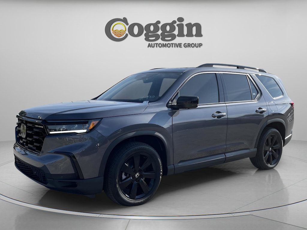 Modern Steel Metallic 2025 Honda Pilot 4D Sport Utility Black Edition 10-Speed Automatic 3.5L V6 DOHC 24V AWD.