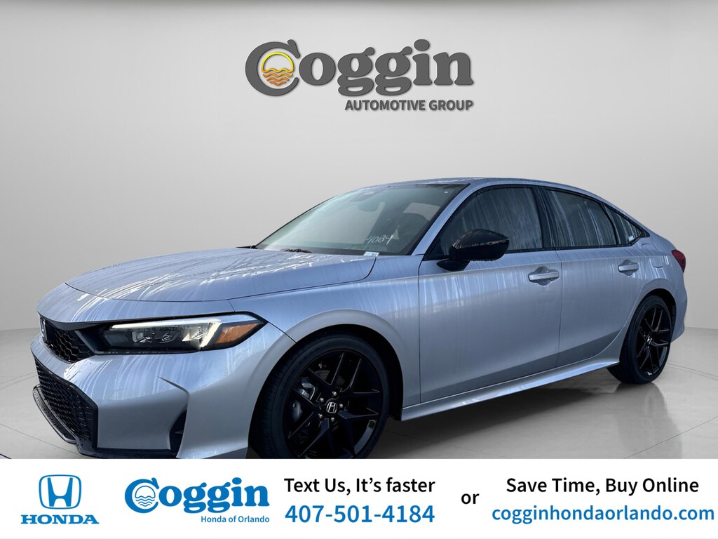 Solar Silver Metallic 2026 Honda Civic 4D Sedan Sport CVT 2.0L I4 DOHC 16V 31/39 City/Highway MPG Black Artificial Leather.