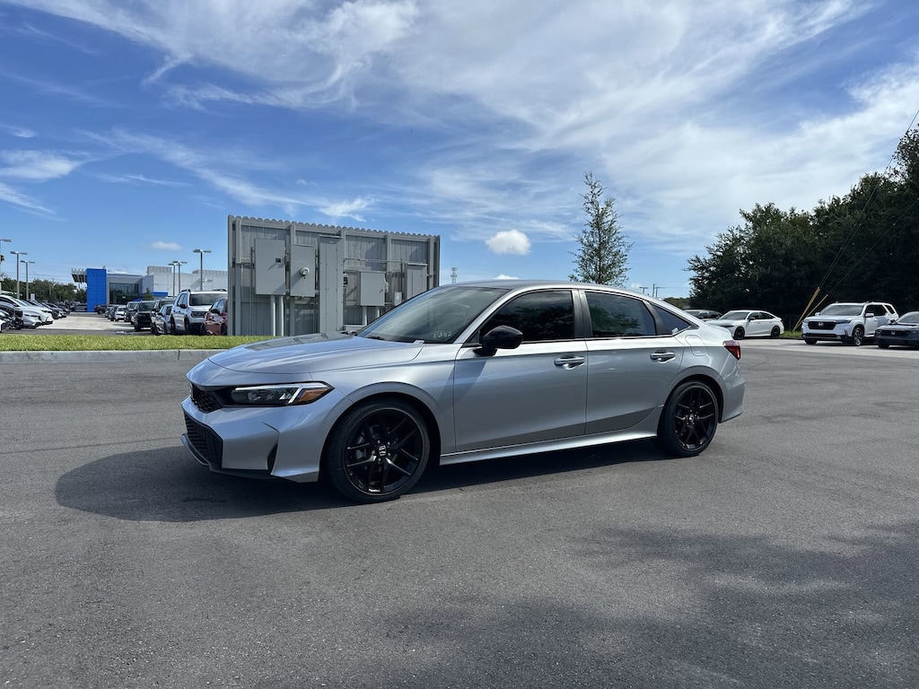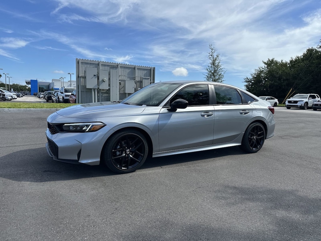 Solar Silver Metallic 2026 Honda Civic 4D Sedan Sport CVT 2.0L I4 DOHC 16V 31/39 City/Highway MPG Black Artificial Leather.
