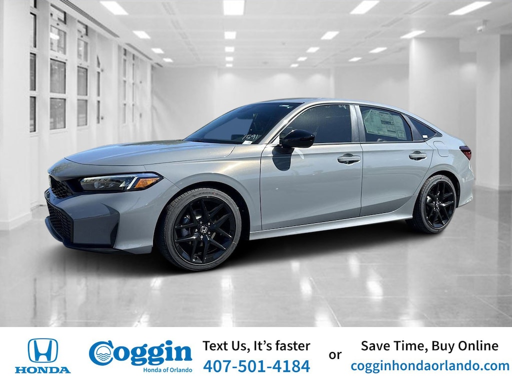 Urban Gray Pearl 2026 Honda Civic 4D Sedan Sport CVT 2.0L I4 DOHC 16V 31/39 City/Highway MPG Black Artificial Leather.