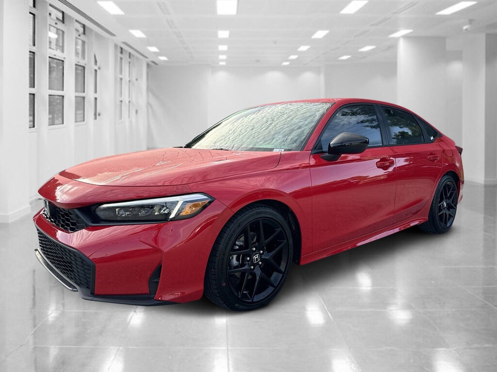 Rallye Red 2026 Honda Civic 4D Sedan Sport CVT 2.0L I4 DOHC 16V 31/39 City/Highway MPG Black Artificial Leather.