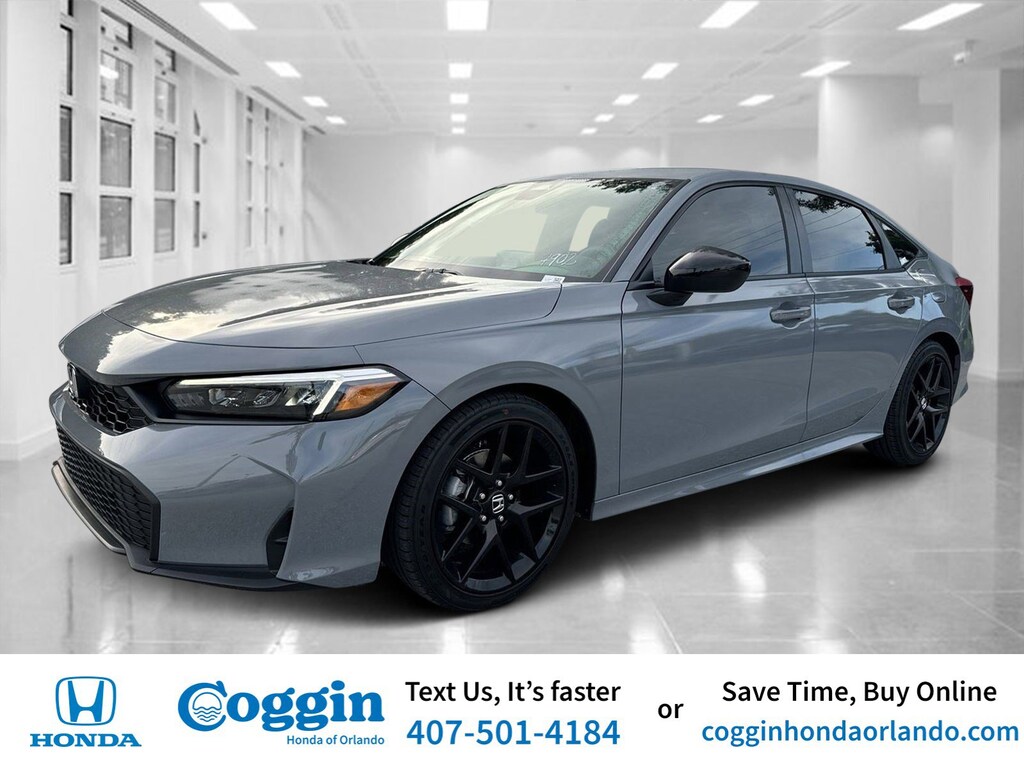 Urban Gray Pearl 2026 Honda Civic 4D Sedan Sport CVT 2.0L I4 DOHC 16V 31/39 City/Highway MPG Black Artificial Leather.