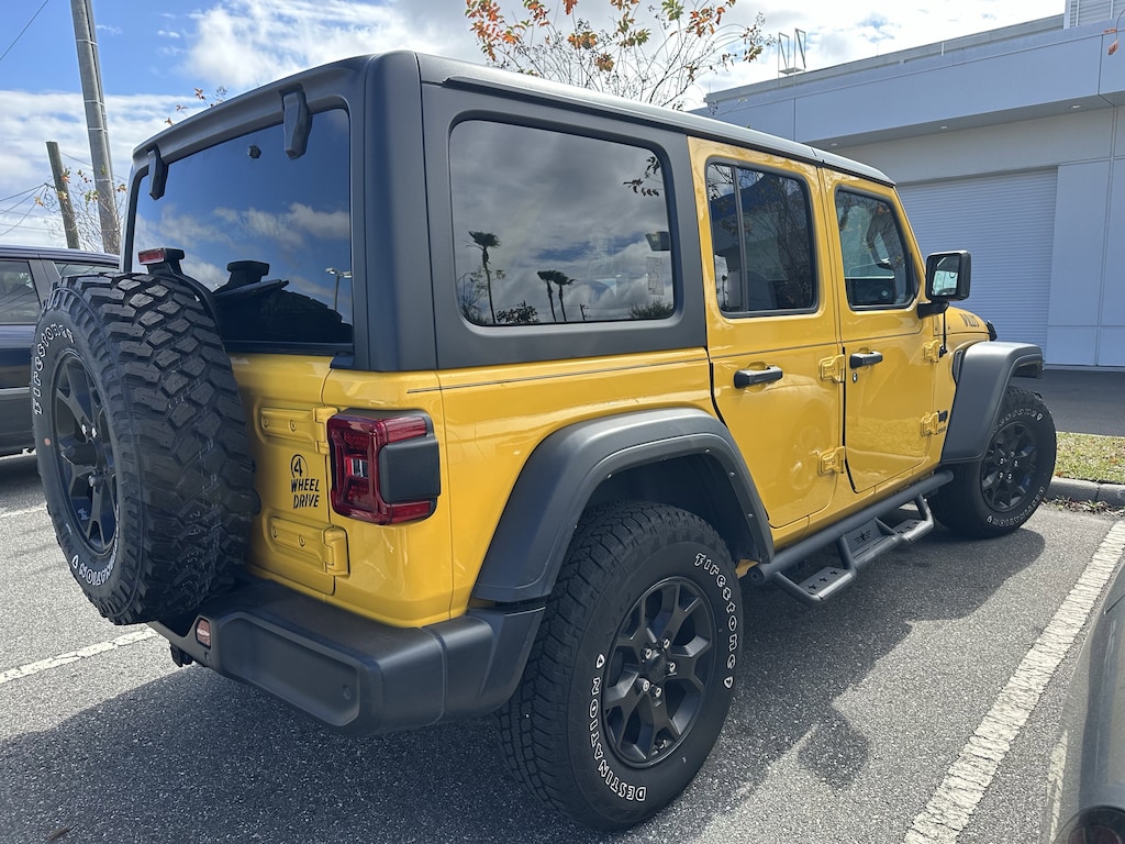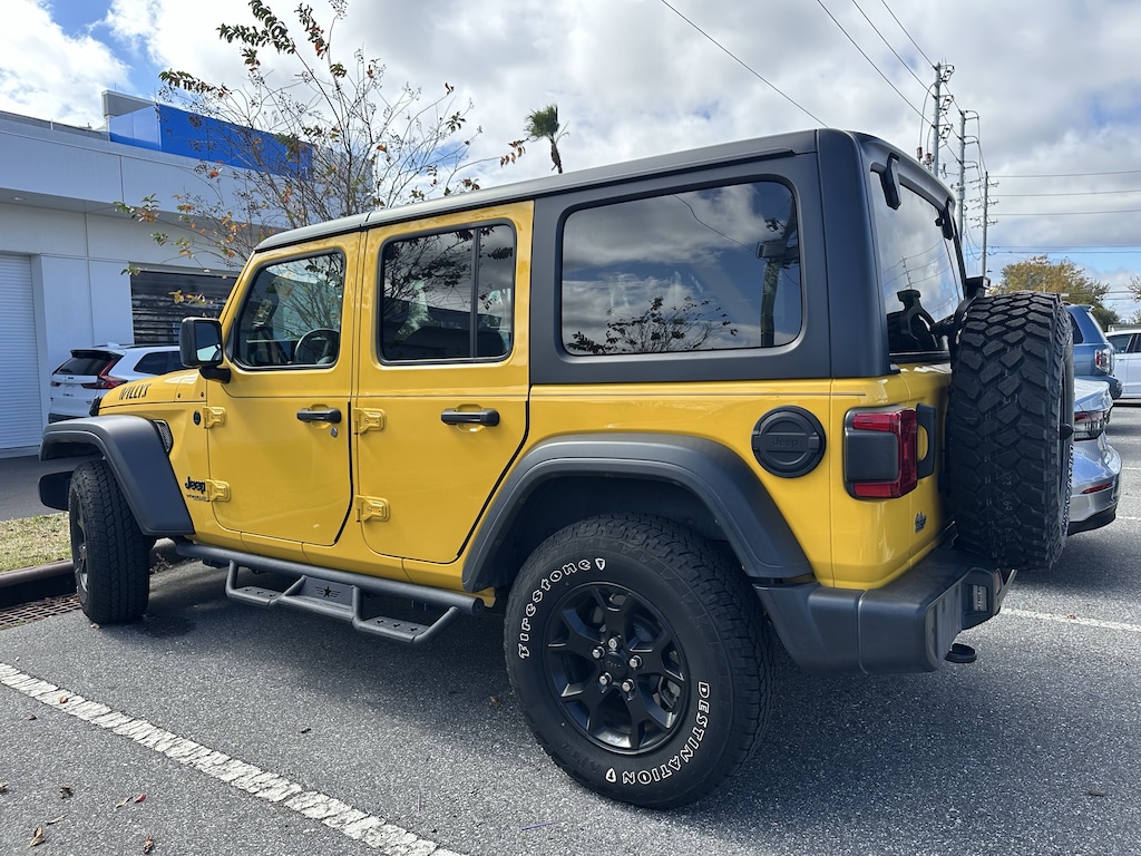 Wrangler Unlimited Willys, 4D Sport Utility, 2.0L I4 DOHC, 8-Speed Automatic, 4WD, Baja Yellow Clearcoat, Black Cloth. KBB Fair Market Range High: $22,470 CARFAX One-Owner. 2021 Jeep Wrangler Unlimited Willys Baja Yellow Clearcoat 2021 Jeep Wrangler Unlimited Willys 4D Sport Utility 4WD 8-Speed Automatic 2.0L I4 DOHCPre-Owned 2021 JeepWrangler Unlimited Sport SUV
