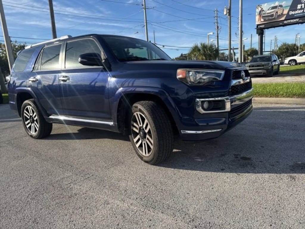 Priced below KBB Fair Purchase Price! Based on 2016 EPA mileage ratings. Use for comparison purposes only. Your actual mileage will vary, depending on how you drive and maintain your vehicle, driving conditions, battery pack age/condition (hybrid models only) and other factors. ONE OWNER, CLEAN CARFAX, NAVIGATION, LEATHER, POWER WINDOWS, POWER LOCKS, ALLOY WHEELS, LOCAL TRADE, BOUGHT AND SERVICED AT COGGIN HONDA OF ORLANDO, EXCELLENT SERVICE HISTORY, COME SEE THIS TODAY!, PRICE INCLUDES ALL RECONDITIONING FEES, 4D Sport Utility, 4.0L V6 SMPI DOHC, 5-Speed Automatic with Overdrive, 4WD, Blue, Black w/Leather Seat Trim, 15 Speakers, 20 x 7.5 Unique Dual 6-Spoke Alloy Wheels, ABS brakes, Alloy wheels, AM/FM radio: SiriusXM, Auto-Dimming Rear-View Mirror, Auto-dimming Rear-View mirror, Body Color Heated Mirrors, CD player, Compass, Driver door bin, Driver vanity mirror, Electronic Stability Control, Front dual zone A/C, Front reading lights, Heated door mirrors, Heated front seats, Heated/Ventilated Front Bucket Seats, Illuminated entry, Leather Seat Trim, Low tire pressure warning, Power door mirrors, Power moonroof, Power Tilt & Slide Moonroof w/Sunshade, Radio data system, Remote keyless entry, Roof rack: rails only, Spoiler, Traction control, Turn signal indicator mirrors. KBB Fair Market Range High: $22,581 CARFAX One-Owner. Clean CARFAX. 2016 Toyota 4Runner Limited Blue 2016 Toyota 4Runner Limited 4D Sport Utility 4WD 5-Speed Automatic with Overdrive 4.0L V6 SMPI DOHC