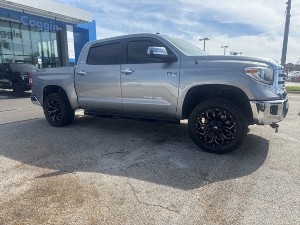 Priced below KBB Fair Purchase Price! LEATHER, POWER WINDOWS, POWER LOCKS, ALLOY WHEELS, EXCELLENT SERVICE HISTORY, COME SEE THIS TODAY!, ROUGH COUNTRY LIFT, OVERSIZED TIRES, 4D CrewMax, 6-Speed Automatic Electronic with Overdrive, 4WD, Silver, Black w/Leather Seat Trim (LE), 9 Speakers, Air Conditioning, AM/FM radio: SiriusXM, Auto-dimming Rear-View mirror, Automatic temperature control, Bedside TRD Off Road Decal, Brushed Stainless Steel Stepboards, CD player, Compass, Driver door bin, Driver vanity mirror, Entune App Suite, Exhaust Tip, Front Bucket Seats, Front Center Armrest, Front dual zone A/C, Front reading lights, Garage door transmitter: HomeLink, Heated door mirrors, Illuminated entry, Leather Seat Trim w/TRD Off Road Package, LED Headlights w/Smoked Housings, Navigation System, Outside temperature display, Overhead console, Panic alarm, Passenger vanity mirror, Power door mirrors, Power driver seat, Power steering, Power windows, Radio data system, Radio: Entune AM/FM/HD w/CD Player, Rear reading lights, Rear seat center armrest, Rear step bumper, Rear window defroster, Remote keyless entry, Security system, SIRIUSXM Satellite Radio, Skid Resistor Bedliner w/Deck Rail System, Speed control, Tachometer, Telescoping steering wheel, Tilt steering wheel, Trail-Tuned Bilstein Shock Absorbers, TRD Off Road Floor Mats, TRD Off Road Package, Trip computer, Tundra Package #1, Voltmeter, Wheels: 18 x 8J Split 5-Spoke TRD Off Road Alloy. KBB Fair Market Range High: $37,051 2018 Toyota Tundra Limited Silver 2018 Toyota Tundra Limited 4D CrewMax 4WD 6-Speed Automatic Electronic with Overdrive 5.7L 8-Cylinder SMPI DOHCRecent Arrival!
